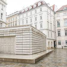 ברחבה הגדולה של היודנפלאץ בחזית המוזיאון ישנה אנדרטה גדולה לזיכרון 65,000 היהודים האוסטרים שנספו בשואה. האנדרטה עוצבה בצורה של ספרייה הפוכה, עם מדפים רבים ועמוסי ספרים שאי אפשר לקרוא בהם. למרגלות האנדרטה כתובים שמות המחנות הרבים ששימשו להשמדת היהודים בתקופת השואה.