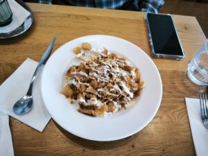בחוץ, השולחנות מתמלאים באור שמש חורפי רך, כזה שמלטף ולא שורף. בפנים, העץ שומר על חמימות של ספרייה ישנה, כאילו מישהו השאיר את הסיפורים על המדפים, ורק החליף את המילים באוכל.