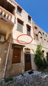 Further up the alley where the Kahal Kadosh Shalom synagogue is located, is also the residence of the wealthy banker Yitzhak Elhadef, which included 3 adjoining houses. He donated his homes to the Jewish community. On the wall of the house hangs a marble sign that says Ladino: "In the name of G-d, the contribution of Yitzhak Elhadaf to the Jewish community of Rhodes. The top floor was donated in memory of his late parents, Yaakov Elhadaf and Rachel Elhadaf. The first floor of House 1 was donated in honor of Rebecca Elhadaf. Incomes from renting House 3 will be transferred to the Repectorio School, in memory of the grandfather Chay Bechor Salomon Elhadaf and Grandma Esther Elhadaf. Incomes from House 5 will be donated to the rabbinical seminary for rabbis of this community. Rhodes, December 14, 1935. The Jewish community is grateful". i
