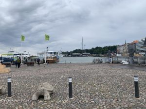בכל מקום בנמל מפוזרים פסלים של צבים מבטון. ואני תמה אם זה בגלל שפה הכל נע בעצלתיים ולאט כמו צב, או בגלל תחושת הבטחון האישי של המקומיים, כאילו יש להם שיריון של צב. הרבה שחפים מעופפים באזור הנמל, ורבים מהם צווחים בלי הרף. או אולי הם שרים לנו "הבאנו שלום עליכם".