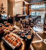 בארוחת הבוקר המשודרגת יש תפריט מגוון המתאים למגוון רב של קהלים. בין היתר מוגשים: סוגים שונים של לחמי מחמצת, לחמניות ביס לבן ודגנים, באגט בורקס חמאה בולגרית עם ממרחים מסוגים רבים, גבינות בוטיק קשות ורכות, דגים כבושים ומעושנים, מבחר גדול של סלטים (ישראלי, קפרזה, יווני, עדשים, קינואה, חסה) ואפילו שקשוקה ישראלית. עמדת בריאות הכוללת יוגורט, פירות יבשים ומגוון גרעינים, לחם ללא גלוטן, גרנולה, ריבה ללא סוכר ועוד. המנות החמות כוללות אומלטים, פשטידות, אנטי פסטי, פיצה איטלקית. המנות האחרונות: קרפ צרפתי, פירות, מגוון עוגות, קרואסונים עבודת יד, מיצים טבעיים, וקפה ברמה איכותית. הכל מוצע לנו ברוחב לב לא רגיל. דני רונן קורא לזה "שדרוג", ואני מעדיף לקרוא לזה "לארג'יות".