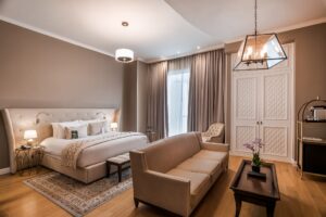 עם פתיחת הדלת, מגלים האורחים חדר שינה מפנק, המעוצב כמו בארמון. המלון דוגל בתפיסת ה-wellbeing, בכל חדר במלון המיטה עם מזרן ייחודי עליו משטח של פלומת נוצות ייחודי של My Bed by Sofitel מבית היוצר של Accor העולמי. חדרי המנהלים הפכו לחדרי אקזקיוטיב-ספא. הראו לנו בצמוד לברזי המקלחות גם קפסולות ריח ייחודיות, דומות לקפסולות של מכונות קפה, וכשפותחים את הברז זורמים מראש המקלחת מים בניחוח הדרים ובגוון צבעוני בהיר. מגניב!