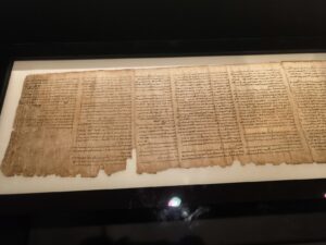 אבל עבורי, כמאמין בתנ"ך, ההתרגשות נובעת ממקום אחר לגמרי. כאן, מול קלף העור העתיק הזה, נוכחת שרשרת הדורות במלוא עוצמתה. לא רעיון מופשט, לא סיפור שעבר שכתוב אינסופי, אלא טקסט אחד, רציף, מדויק להפליא, שמצליח לחצות אלפיים שנה כמעט בלי לאבד את קולו. קול שמשדר ומוכיח את מאמר חז"ל "משה אמת ותורתו אמת". קול שמבטל בגיחוך את גישת 'ההיסטוריונים החדשים' שטוענים שהתורה והתנ"ך אינם יצירה אלוהית, אלא יצירה ספרותית של בן אנוש, מחבר מוכשר מהמאה העשירית.