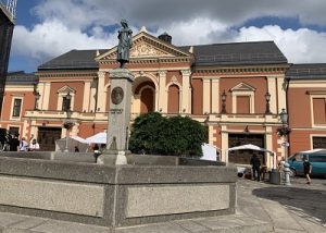 הכיכר הראשית בקלייפדה היא כיכר התיאטרון. בנין התיאטרון הזה נבנה אחרי השריפה הגדולה, והצליח לשרוד הפצצות במלחמת העולם השניה. זה בנין התיאטרון העתיק ביותר בליטא. במרכז הכיכר יש מזרקה עם הפסל החשוב ביותר בעיר. זה פסל של המשורר הלאומי של פרוסיה, סימון דאח (1605-1659). שירו המפורסם ביותר נקרא "אָן מִטַרָאוֹ". אָן היתה כלתו של חברו הטוב, והמשורר התאהב בה, אך נמנע מלחזר אחריה. את תסכולו ורגשותיו הוא ביטא בשיר אהבה שהקריא בטקס החתונה של חברו עם אן. השיר הזה הולחן, והוא נחשב שלאגר ששרים אותו מאז ועד היום.