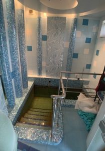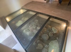 שרידי היסודות של בית הכנסת נשמרו, והונחו עליהם משטחי זכוכית עבה. זה נמצא ליד הדלת האחרונה בצד השמאלי של הבנין. אם הדלת סגורה, אפשר לפנות לפקידי הקבלה של המלון, ואם הם לא עסוקים מידי, הם יפתחו לנו את הדלת.