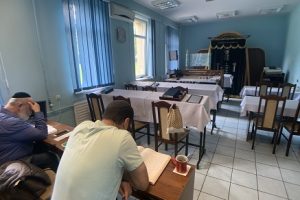 כשנכנסתי לבית הכנסת ראיתי באחת הפינות צעיר משנן קריאה בתורה לפרשת השבוע של מחרתיים. בקצה בית הכנסת ראיתי שני אברכים עסוקים בלימוד. כשנגשתי לפטפט איתם ולהכירם, הם נפנפו אותי והסבירו שהם כעת באמצע שיעור תורה באמצעות הסקייפ, ולא רוצים להפסיד אף מילה. עם קדוש! (פעם ראשונה בחיי שנהניתי כשמגרשים אותי…).
