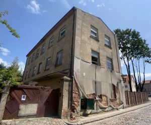 מול בית החלוץ אנו רואים מגרש ריק. פה עמד המקווה הישן של קלייפדה ברחוב Skerdėjų 4. המבנה נהרס, אבל המיקום נשמר.