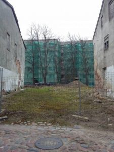 כל המבנים שבמיתחם נהרסו בהפצצות של הרוסים במלחמת העולם השניה. לקירות לא נותר זכר, אבל הרצפה של בית הכנסת ושל בית הספר היהודי נשמרו. העיריה מכבדת את המקום, ואוסרת לבנות עליו בתי מגורים. אם אנחנו מגיעים לכאן אחר הצהריים, אולי זה המקום הראוי לתפילת מנחה. אפילו ביחידות. תרומה אישית קטנה שלנו לחזרת עטרה ליושנה במקום המקודש הזה.
