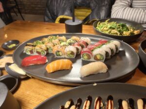 וההגשה? יפהפייה. מדויקת. שקטה. צלחות בצבע שחור שנותנות כבוד לצבעים, למרקמים, לניגודים בין אדום של טונה, ירוק של אבוקדו ולבן בוהק של אורז. כי אנחנו אוכלים גם עם העיניים, ובמיו מבינים את זה לעומק.