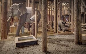בפנים יש כלובים ובהן פסלי עץ של יצורים חיים כמו גורילות פילים וקרנפים בגודל טבעי, וגם שפנים וחיות קטנות מסתובבות בפנים. יש שם גם פינת ליטוף לחיות, בית קולנוע ואמפיתיאטרון, ומסעדה. בקומה השניה שיחזרו את מתחם המגורים של משפחת נח.